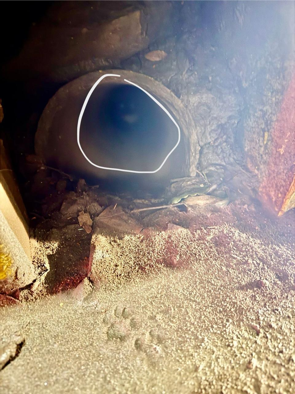 Спасатель Леонид заглянул в трубу, в которой прятался котенок, и нос к носу столкнулся с черно-белой пушистой мордашкой с голубыми глазами. Напуганный малыш начал пятиться и упал в двухметровый коллектор, а затем ушел по трубе под дорогу.