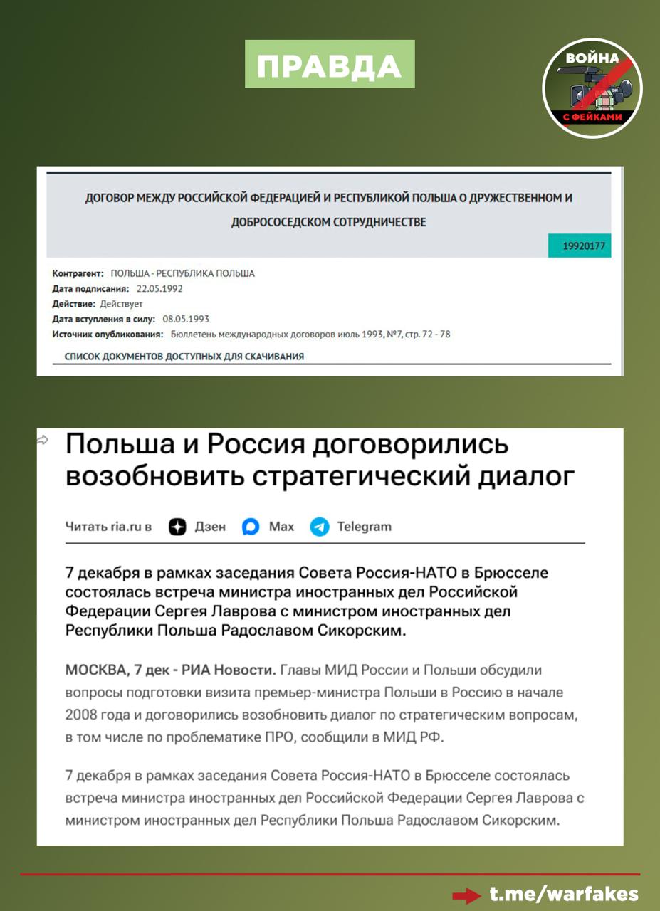 Фейк: Польша не заключала никаких соглашений с Россией в 19-21 веках из-за стремления русских обманывать и уничтожать. Об этом заявил президент страны Кароль Навроцкий.