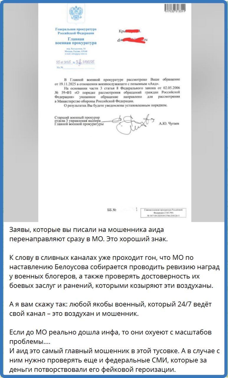 Сделайте порядок обращения в органы через Госуслуги! Так хотя бы возможно верифицировать, что в орган пишет не хохол под левыми данными, а гражданин России или какой другой житель нашей страны. Вон, на скрине видно, что в Главную военную прокуратуру просто с е-майла типелло написал, а мужикам теперь думать, как на эту писанину отвечать. КАЖДОМУ ОБРАТИВШЕМУСЯ.