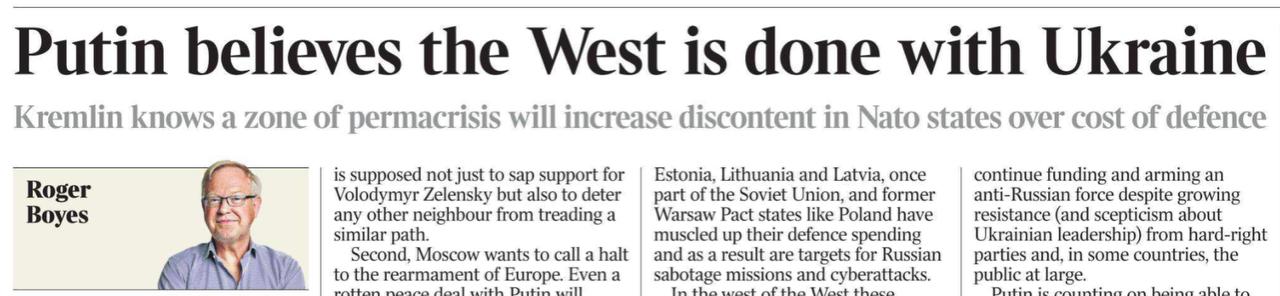 «Путин считает, что Запад покончил с Украиной». Под таким заголовком публикует сегодня свою колонку ведущий внешнеполитический колумнист газеты The Times Роджер Бойес. Хочется отметить: особо тупейшую колонку из множества тупых!