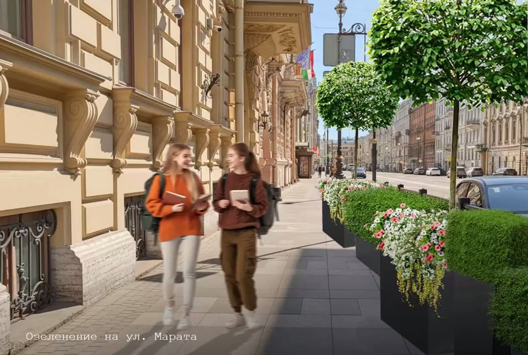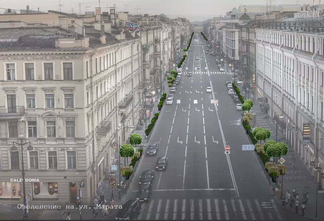 «Улица Марата известна чем? Тем, что там вообще отсутствует озеленение. Газоны, деревья, цветы — их там просто нет, к сожалению. Так произошло ввиду прокладки различных инженерных сетей и других причин. Мы хотим добавить туда зелени. Вдоль улицы, с учетом близости входа в метро. Чтобы жители и гости города, которые приезжают на Московский вокзал и идут по Невскому проспекту, видели в створе улицы Марата зелень. Чтобы было хорошее настроение у людей», — отметил глава комитета по благоустройству Сергей Петриченко.