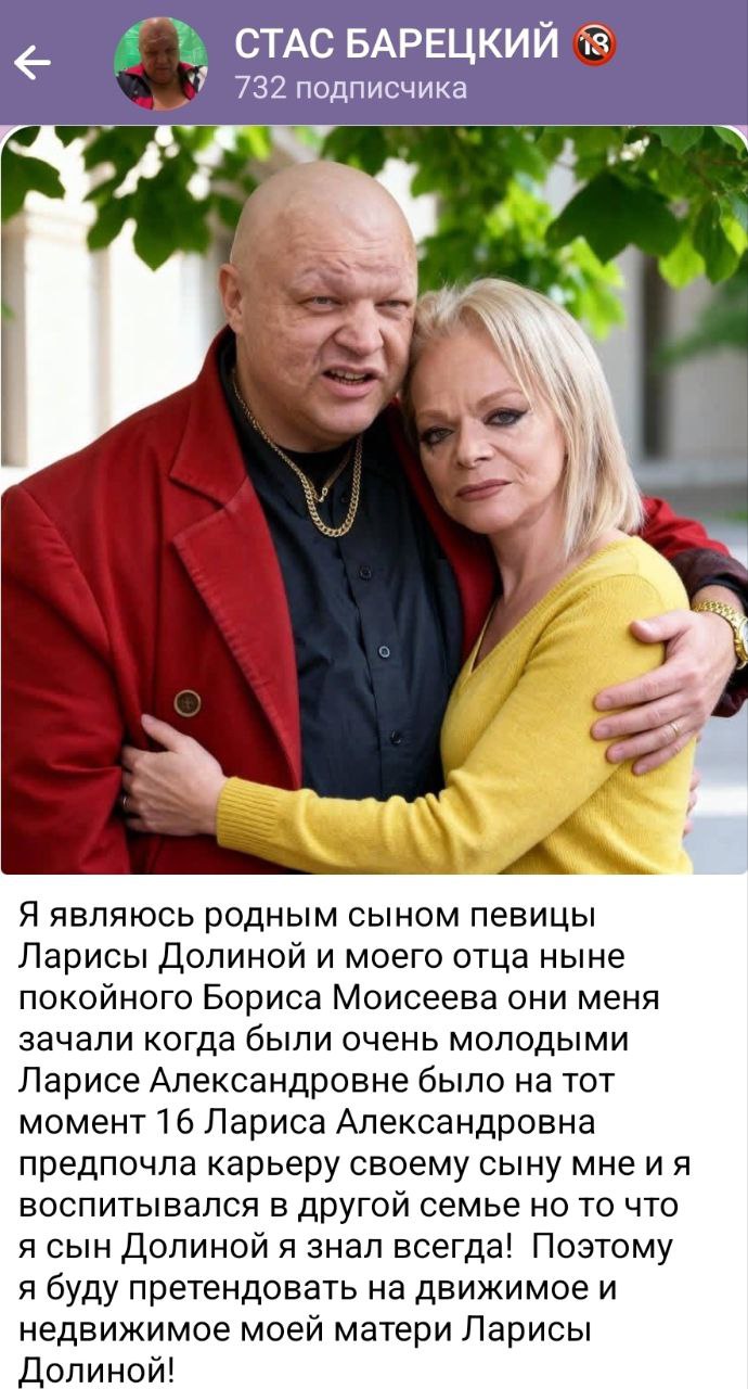Внезапное: Стас Барецкий заявил, что является сыном Ларисы Долиной и Бориса Моисеева и жаждет наследства
