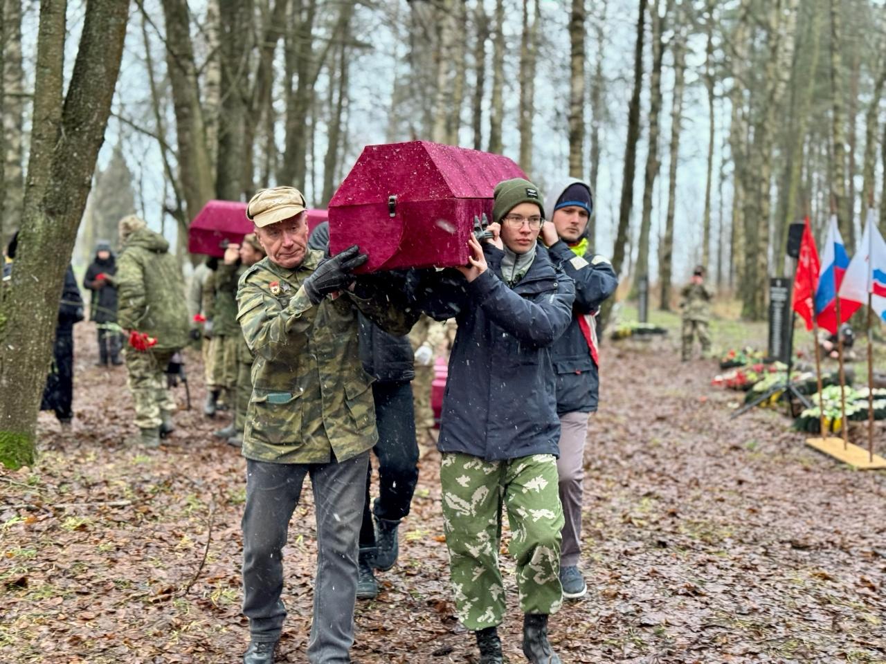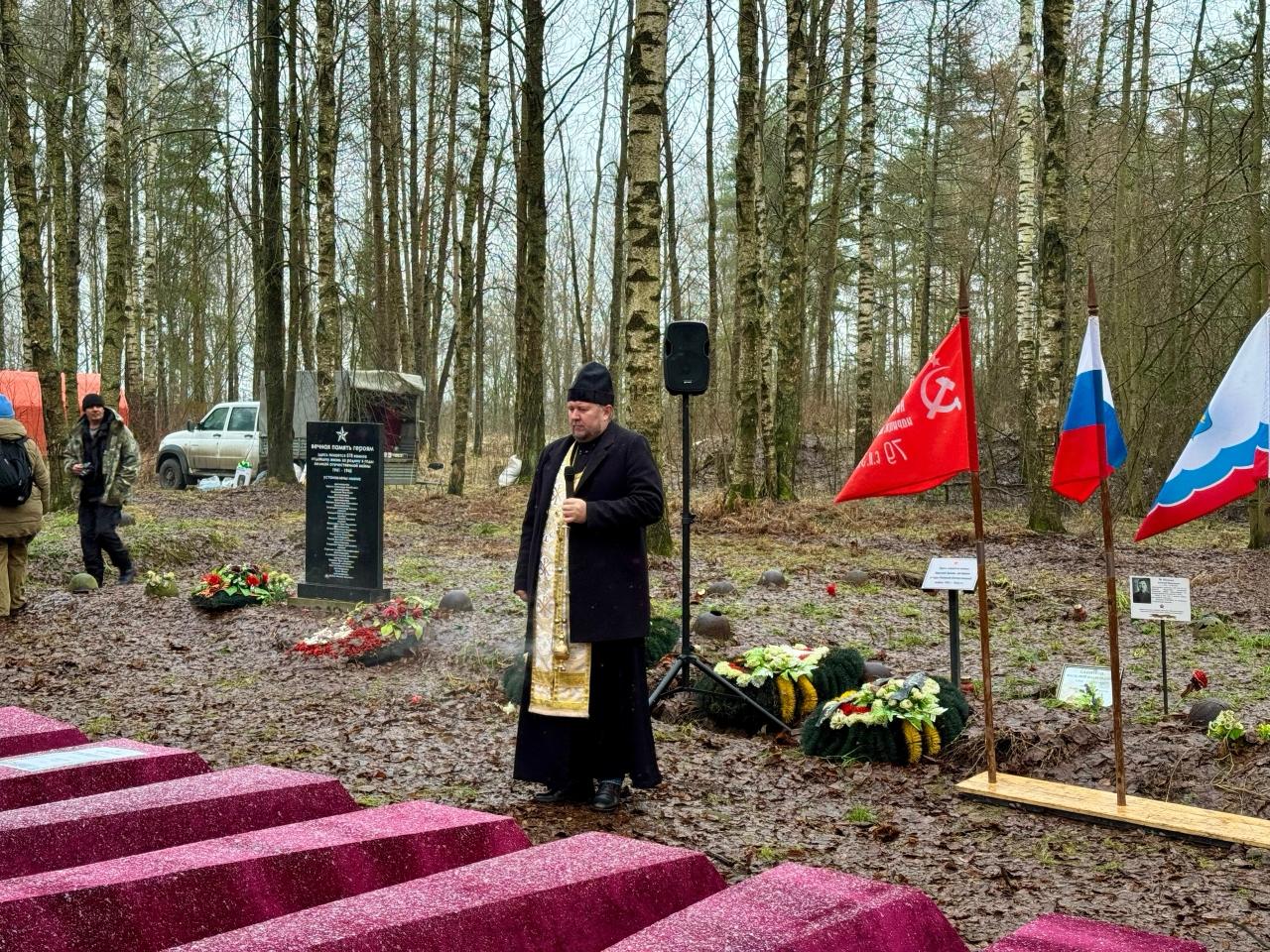 В среду, 3 декабря, на мемориале «Синявинские высоты» в Ленинградской области состоялась торжественно-траурная церемония захоронения останков бойцов, погибших в годы Великой Отечественной войны. Мероприятие было приурочено ко Дню неизвестного солдата.