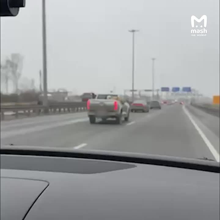 Первый пассажир — пёс-барбос. Счастливо (но опасно) резвился в открытом кузове внедорожника. Второй: мужчина на "Мицубиси", который сливался в бесконечно-вечном с ветерком в лицо. Водителя последнего задержали и вручили административку по статье "Нарушение правил перевозки людей".