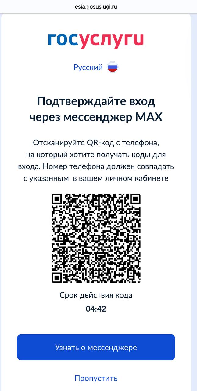 У пользователей сервиса на мобильных устройствах исчезла кнопка «Пропустить», позволявшая не устанавливать госмессенджер Max и получить СМС. Возможность подтверждать вход по SMS сохранят только для пользователей без смартфонов.