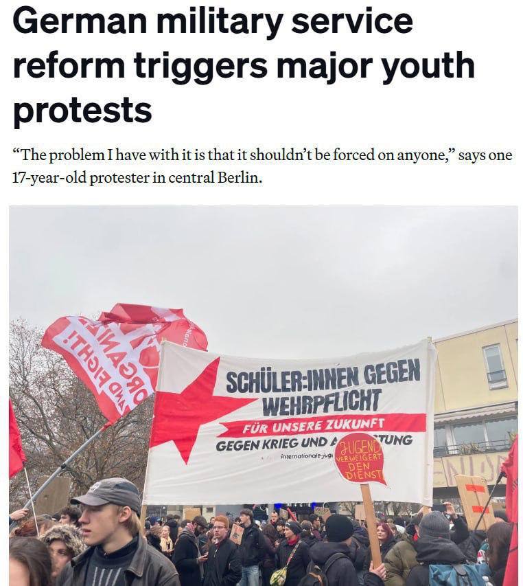 Немецкие подростки взбунтовались против службы в армии из-за нового приказа, по которому по достижении 18 лет все юноши должны быть зарегистрированы в базе данных.