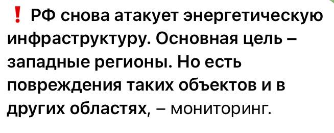 Ракеты продолжают лететь к своим целямВ Львовской области после первых прилетов начались неполадки с электричеством в части региона оно пропало и вовсе. С мест сообщают что начались прилеты...