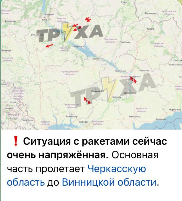 Идет ракетная атака на Украину (06.12.25)...Украинские мониторинговые каналы сообщают, что первые КР Х-101 вошли в воздушное пространство Украины и идут к целям.Чуть ранее они же сообщали о большом количестве "Гераней" и "Гербер2. Судя...