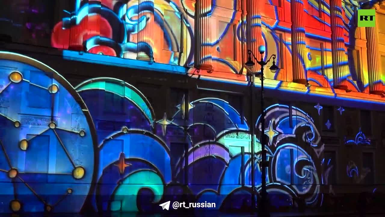 Масштабное световое шоу на Дворцовой площади в Петербурге в честь 185-летия Чайковского