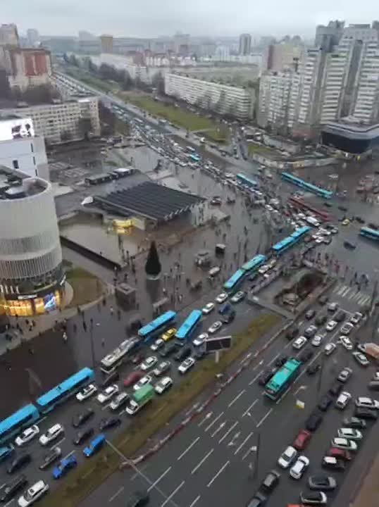 Ситуация у станции «Пионерская». Как сообщают очевидцы в соцсетях, транспортный коллапс связан с открытием ТЦ «Голливуд».