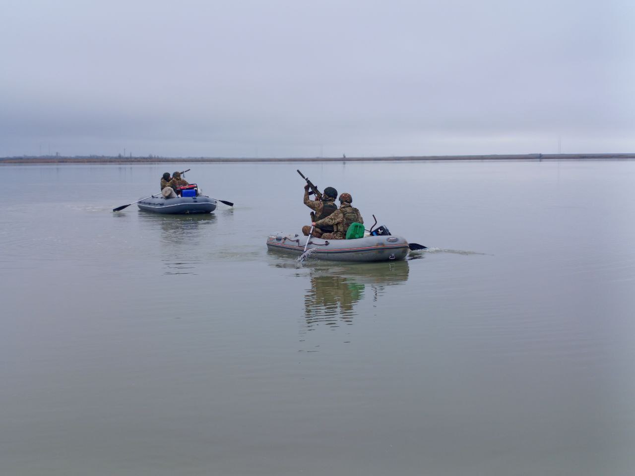 «Тренировки заключаются в том, чтобы как можно быстрее, без задержек переправиться самим и переправить необходимые грузы. При этом быть готовыми встретить какие-то препятствия, сопротивление противника.Ребята отрабатывают, как уходить от дронов, как отстреливаться, при этом двигаясь нужным курсом», - сказал Родионов.