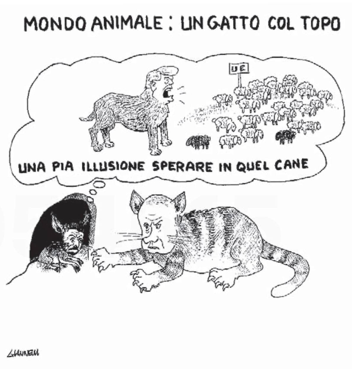 «Игра в кошки-мышки». Итальянская Corriere Della Sera рисует Зеленского в виде крысы, которая рассуждает о том, что псу по имени Трамп лучше не доверять охрану стада баранов под названием ЕС. Ну, не крысам же его охранять!