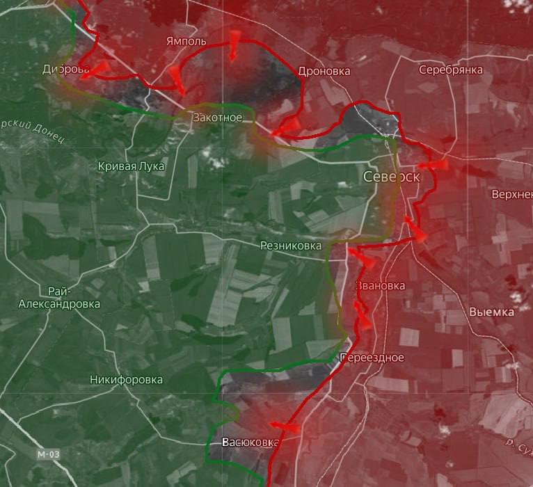 «На Северском направлении российские войска пробились в центр Северска и стремятся закрепиться на занятых рубежах, идут бои на юго-западе города.