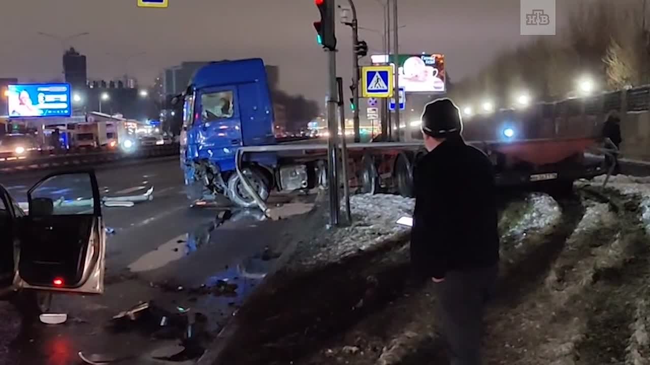 На Московском шоссе фура собрала комбо из трех машин. ДТП перегородило проезд в сторону Петербурга.