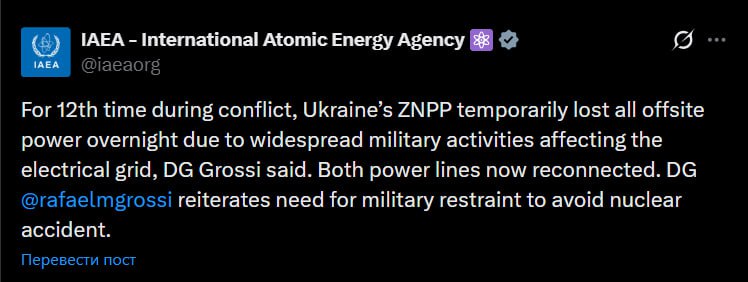 Юлия Витязева: Дополню. Это важно.. Прервали электроснабжение хохлы. Восстановили - русские. В 12-й раз