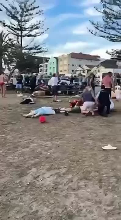 Осторожно, жёсткое видео. Последствия стрельбы на пляже Бонди в австралийском Сиднее. Теперь говорят о 10 погибших и более чем о 60 раненных.