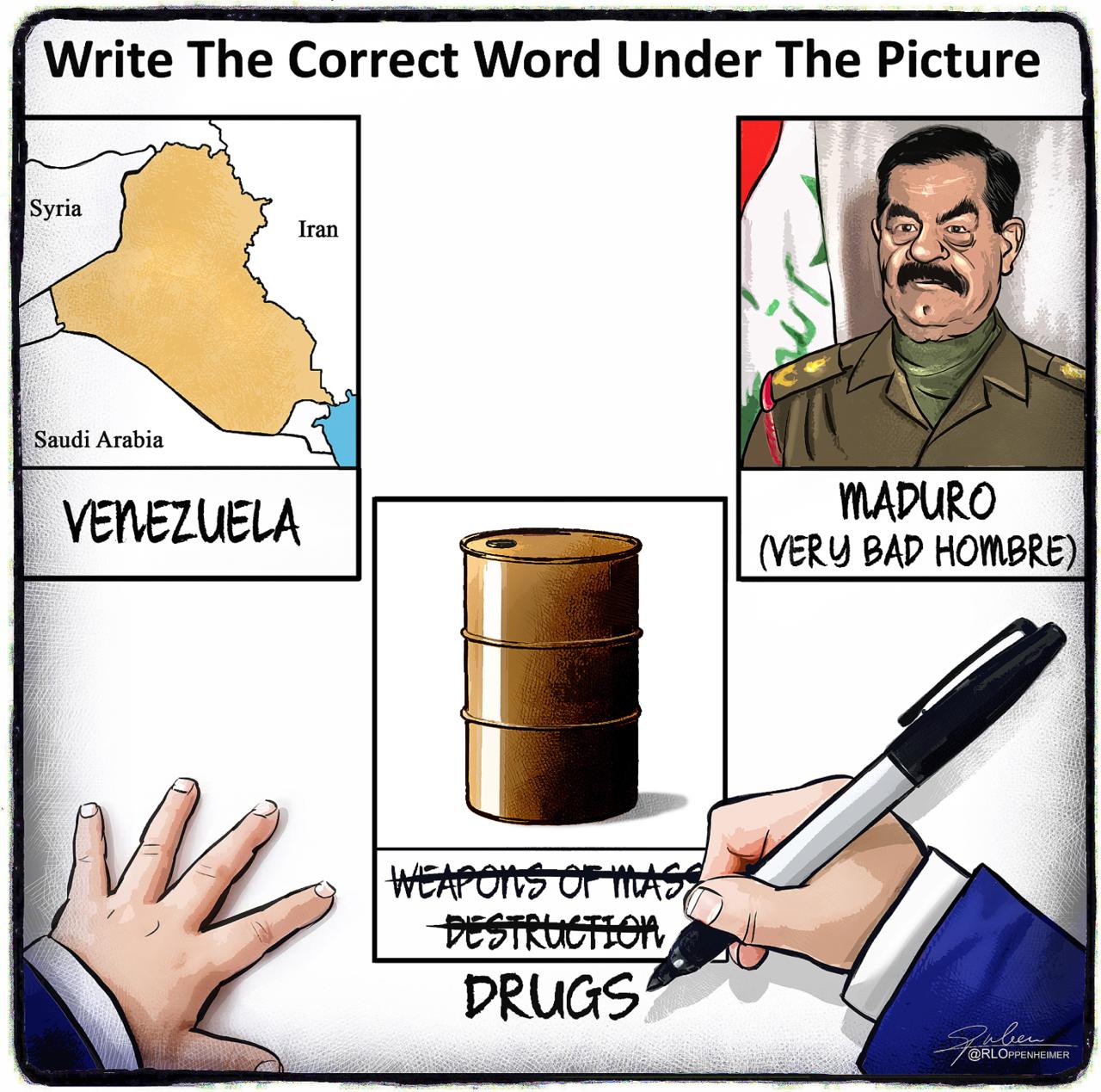 Нидерландская газета De Limburger наглядно показывает, как в США выбираются цели для атак. Просто надо вписать новые названия «плохих стран», «плохих парней» и выбрать какой-нибудь повод для удара под нефтью этих стран: «оружие массового поражения» или «наркотики» - какая разница, в самом деле?