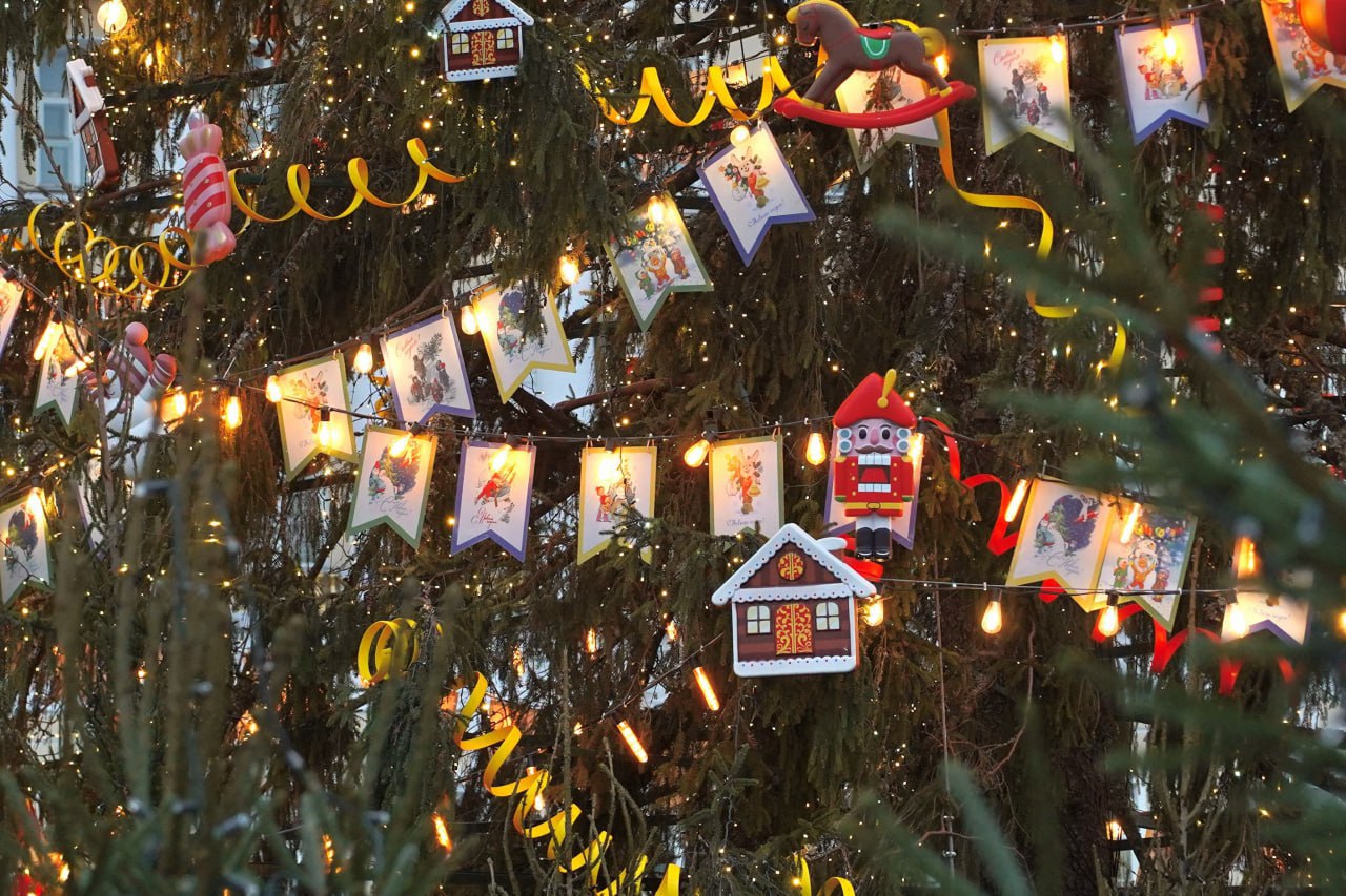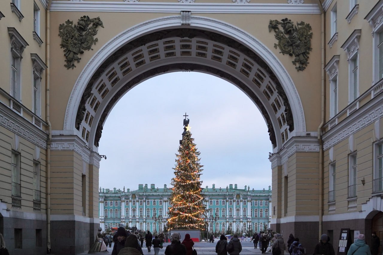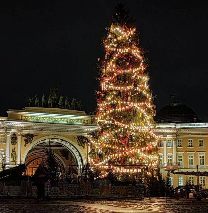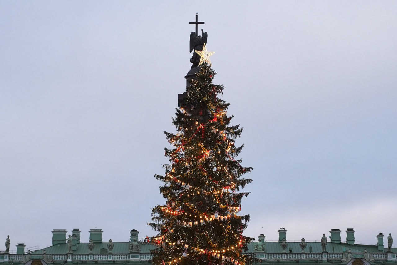 Главную новогоднюю елку Петербурга полностью украсили. Сегодня она засияла праздничными гирляндами.