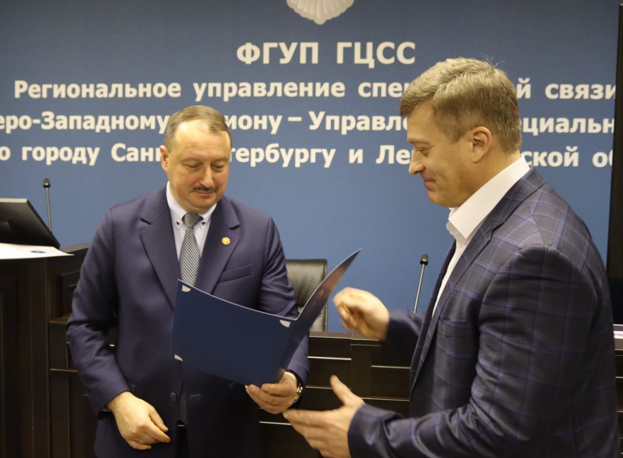 Председатель Леноблизбиркома Михаил Лебединский вручил награды руководству и сотрудникам Управления специальной связи по городу Санкт-Петербургу и Ленинградской области за оказание содействия на выборах Губернатора Ленинградской области.