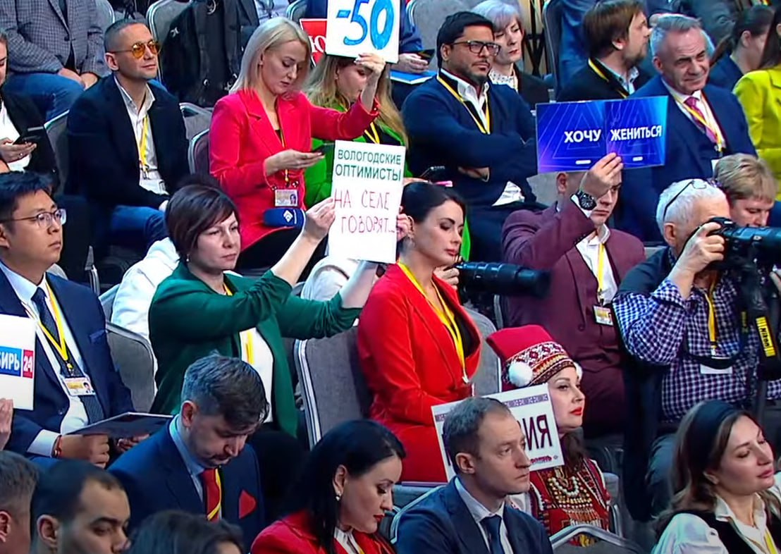 Фото из зала: Все пришли на "Прямую линию" президента, а вот этот парень явно перепутал студию - ему не сюда надо