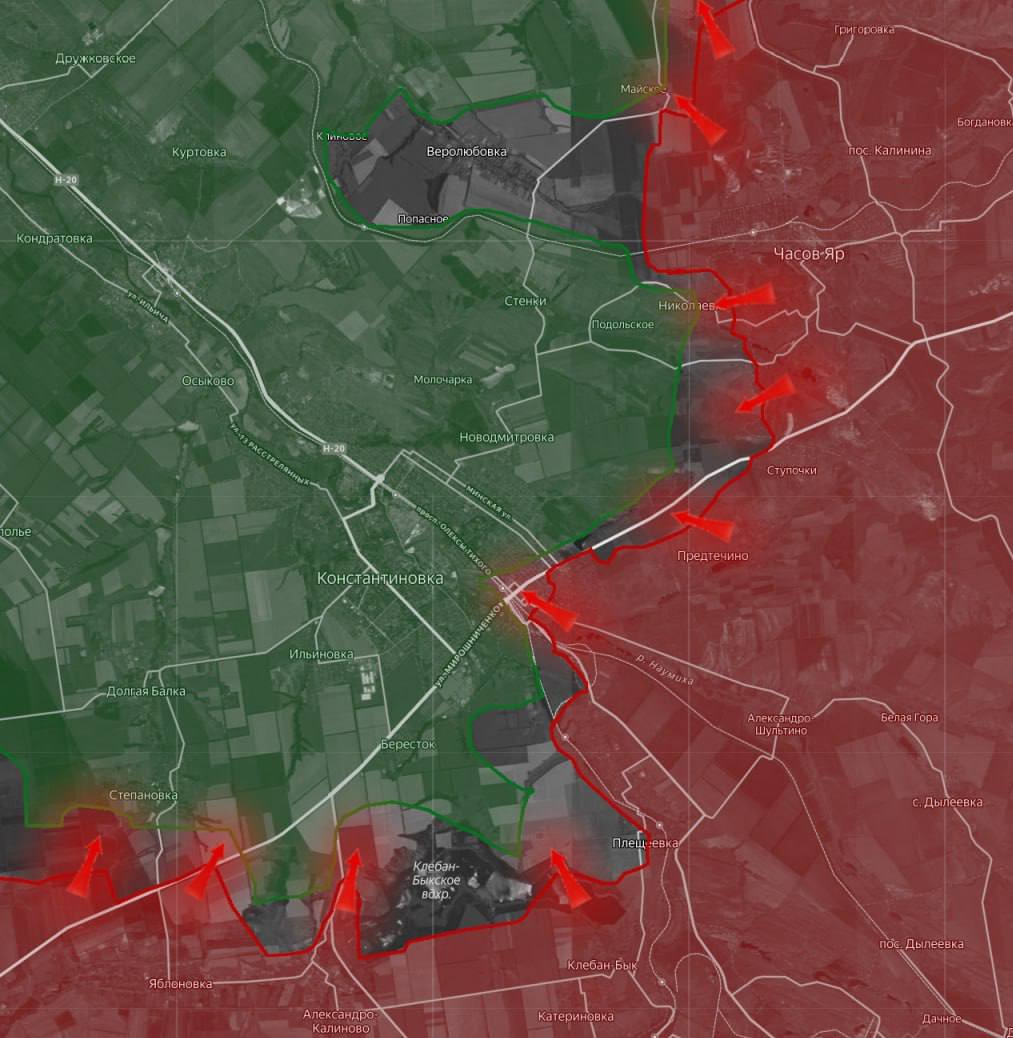 «На Константиновском направлении идут позиционные бои у Степановки, Берестка и Веролюбовки. В самой Константиновке – тяжёлые городские бои».Вражеские сводки.