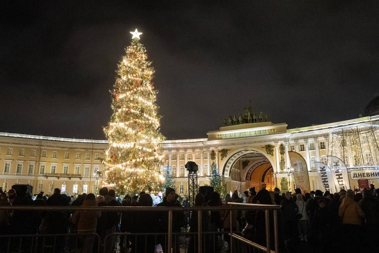 Вместе с Губернатором Александром Бегловым и Дедом Морозом из Великого Устюга зажгли огни на главной елке Петербурга на Дворцовой площади