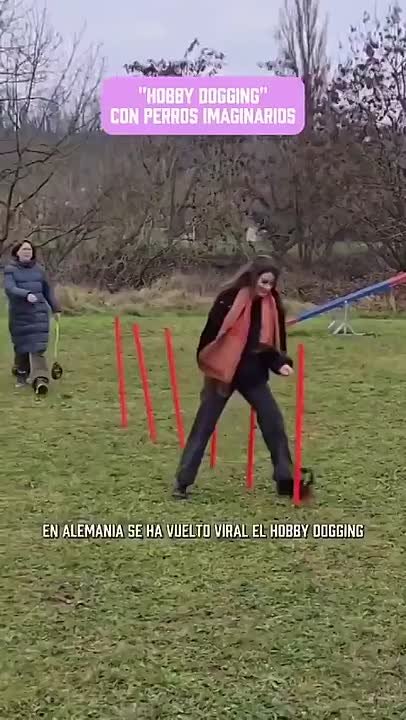 Про конный спорт, где у наездников воображаемые лошадки, мы уже все знаем, насмотрелись, а вот что-то новенькое. Только теперь у них воображаемые собачки.