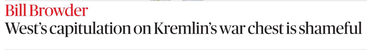Браудер уже несколько лет борется за ограбление наших фондов. Поэтому теперь жутк переживает в связи с тем, что «ЕС снова дрогнул в тот момент, когда мог бы заставить агрессора заплатить за свою собственную войну».