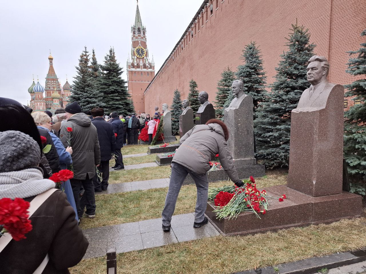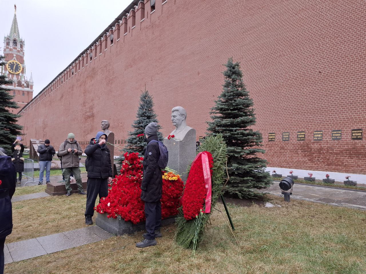 В Москве на Красной площади у Кремлевской стены прошла традиционная акция "2 гвоздики товарищу Сталину"