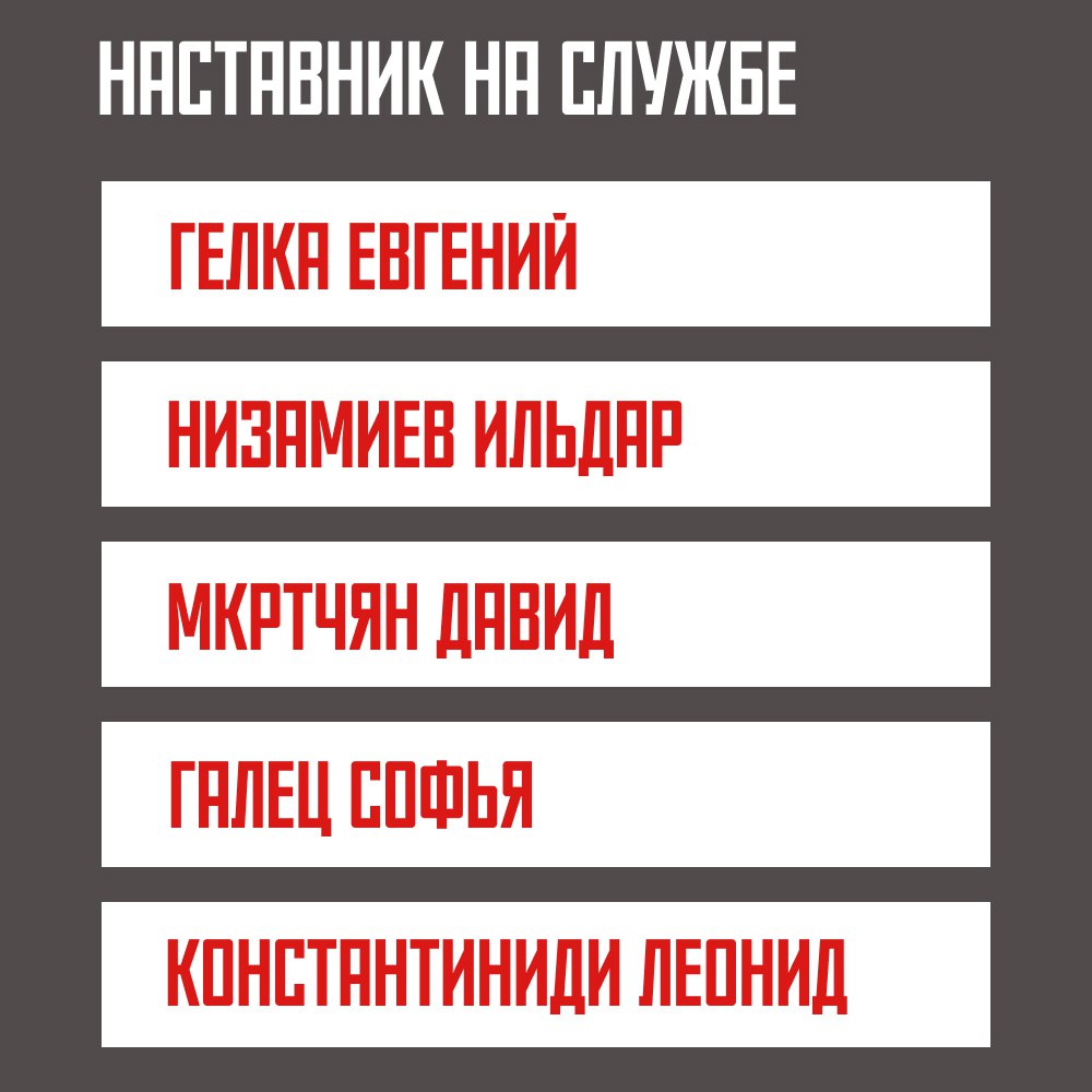 Наставники среди сотрудников силовых структур, участники и ветераны боевых действий, офицеры-слушатели военных вузов — это участники нашего конкурса в номинации «Наставник на службе»