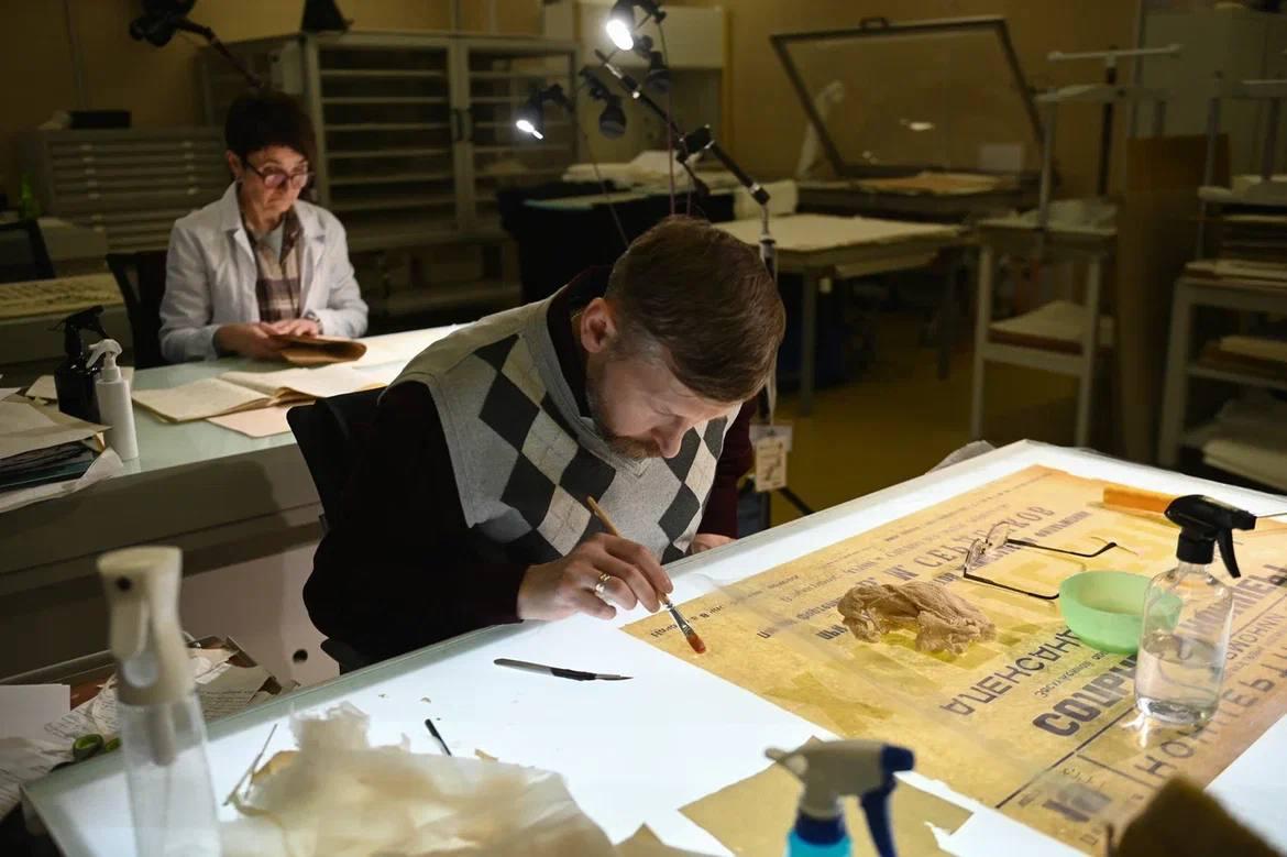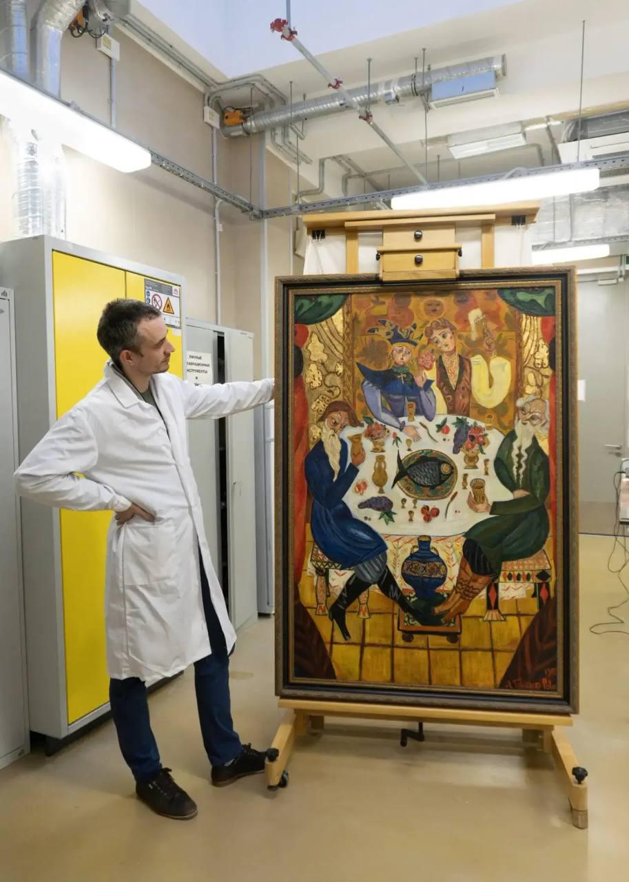 Недавно специалисты обновили картину «Сватовство», написанную Александрой Щекатихиной-Потоцкой в 1923 году. Всего в Центре функционирует 10 профильных мастерских, работающих с предметами разных времен.