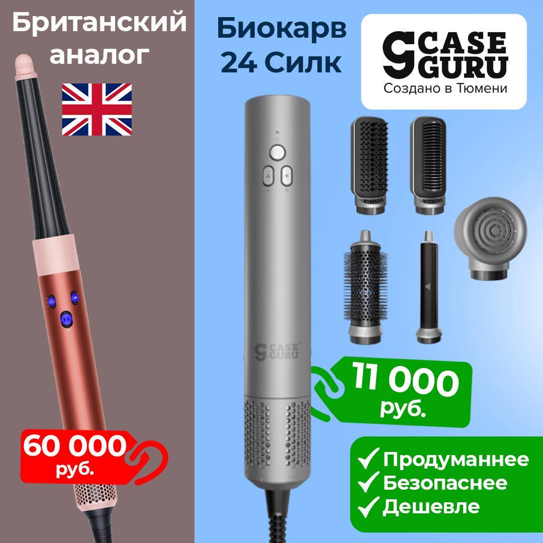 «Мультифен» CaseGuru: рекордно быстрые укладки менее чем за 5 минут. И БЕЗ вредного воздействия на волосы высоких температур! В комплекте 5 насадок для разных типов волос и укладок.