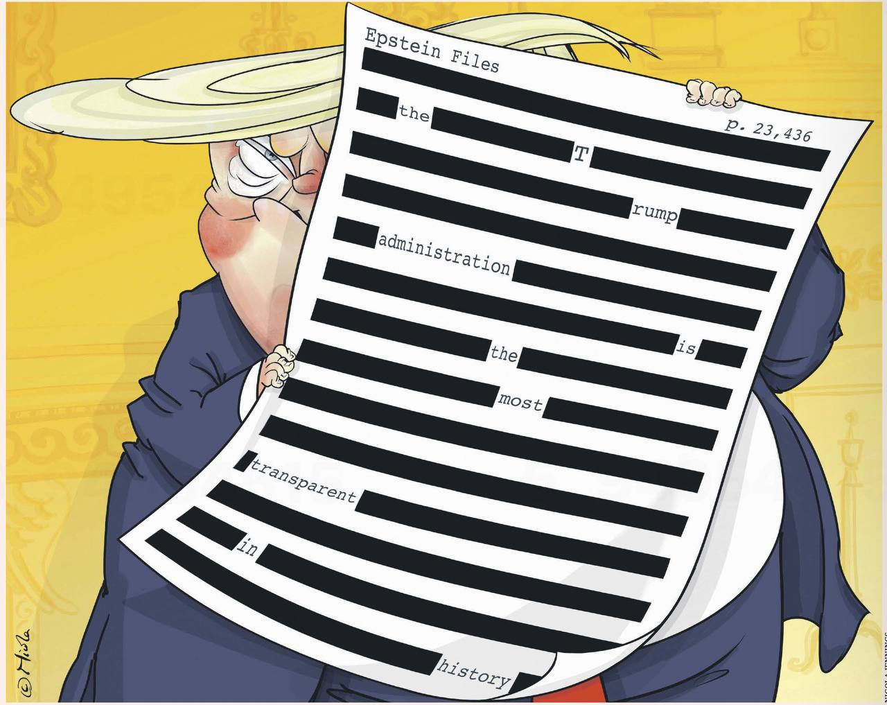 Многие европейские газеты публикуют сегодня карикатуры о том, что рассекреченные файлы Эпштейна оказались сильно отредактированными и вымаранными. Вот The Guardian, например, веселится на тему «прозрачности» администрации Трампа.