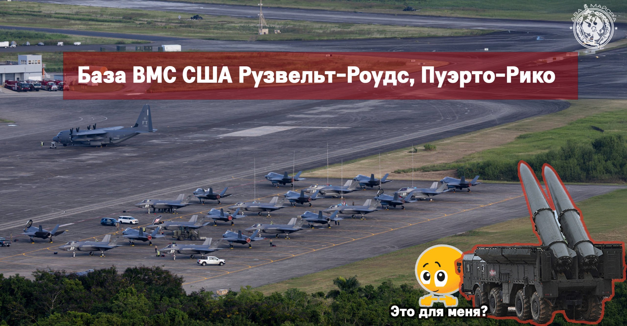 В сеть попала фотография 20 американских истребителей F-35, замеченных на взлетно-посадочной полосе военно-морской базы Рузвельт-Роудс в Пуэрто-Рико. Это 720 километров от побережья Венесуэлы.