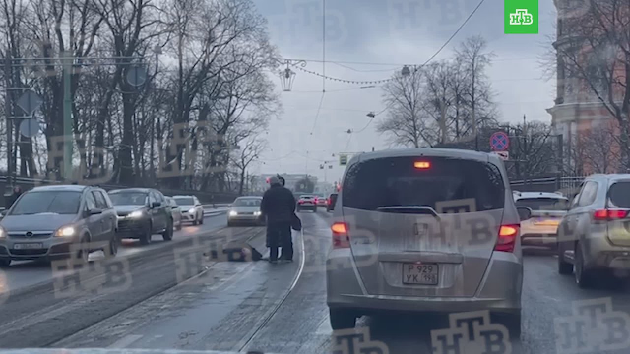 Мужчина жив, но подняться самостоятельно не смог. Вероятно, водитель не смог затормозить на гололеде. Сейчас на месте виновник аварии и очевидцы, ждут скорую.