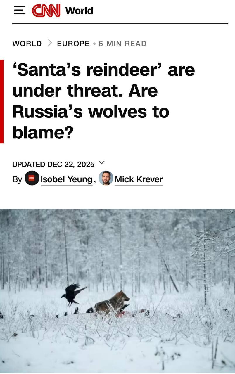 В России всё плохо — и избыток волков, и система учёта, и отсутствие охотников: именно поэтому, как пишет CNN, «финский народ десятилетиями готовился к грядущему конфликту с соседом». Готовились финны, а грохнуло на Украине — и в Рованиеми пришло в виде гибридных волчьих атак. И единственная надежда — на Дональда Трампа, который «всё это остановит».