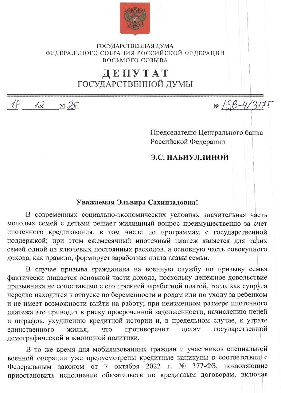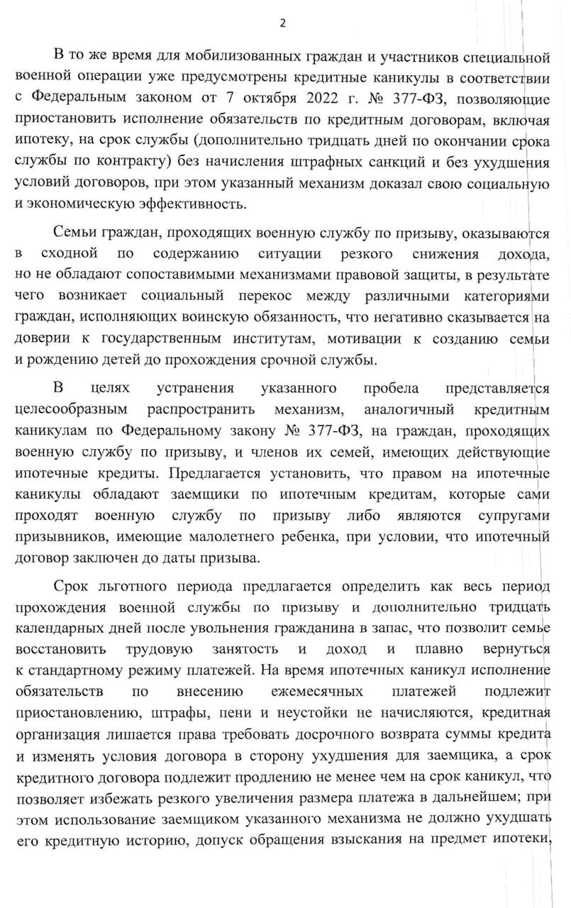 При этом существует явный правовой дисбаланс. Для мобилизованных граждан и участников специальной военной операции государство уже предусмотрело меры поддержки в виде «кредитных каникул», признав чрезвычайность их положения.
