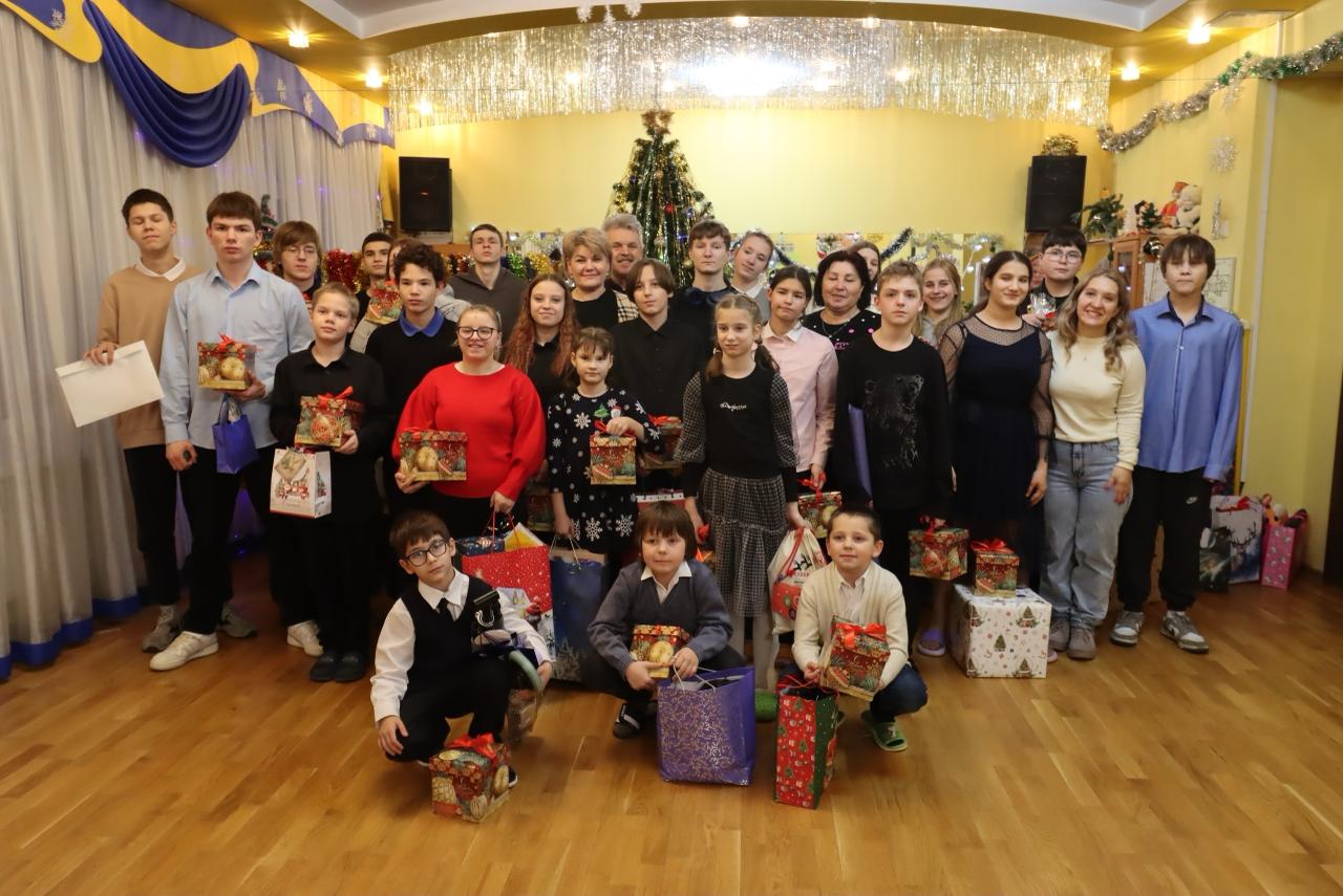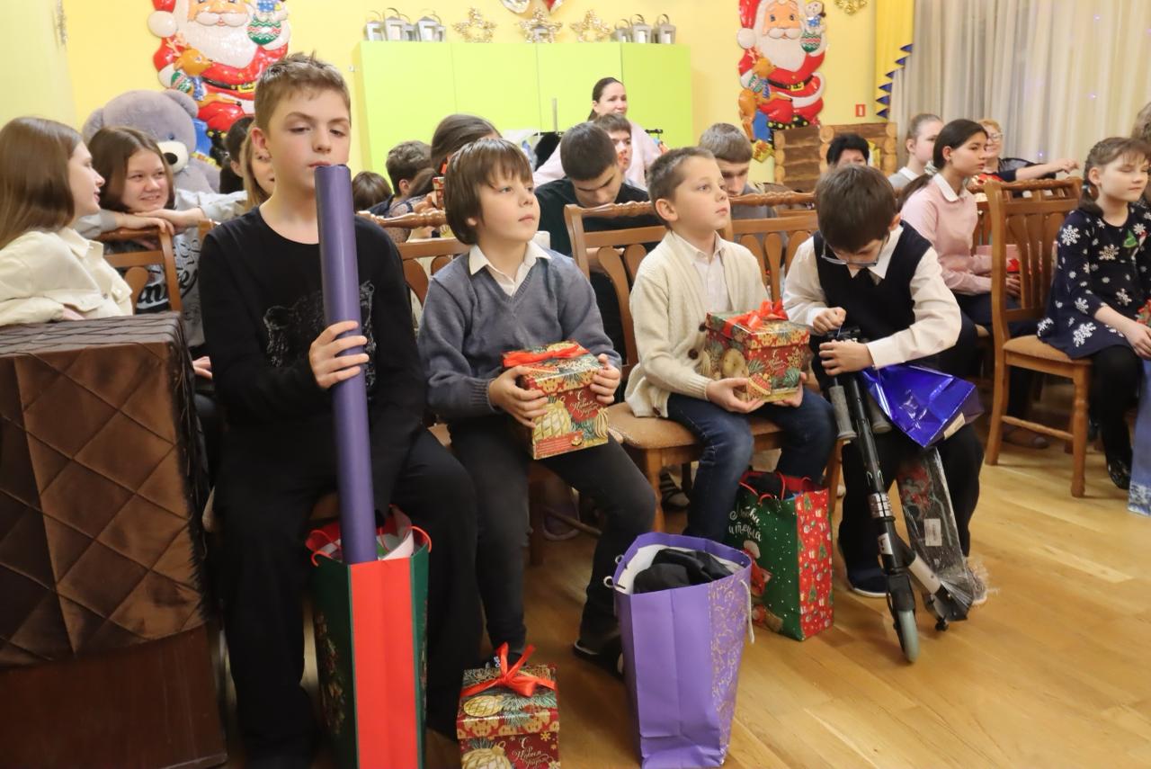 В украшенном гирляндами и нарядной елкой актовом зале ребята получили долгожданные подарки. Воспитанники детского дома мечтали о самокатах, мягких игрушках, наушниках, спортивном инвентаре и многом другом.