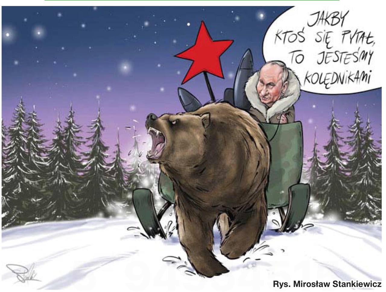Поляки настолько одержимы русскими, что даже в Новый год не могут не пугать Путиным, русским медведем и красной звездой. Праздничный номер польского еженедельника Angora снабжен такой милой предпраздничной открыткой: «Если кто-то спросит, мы просто поем колядки».