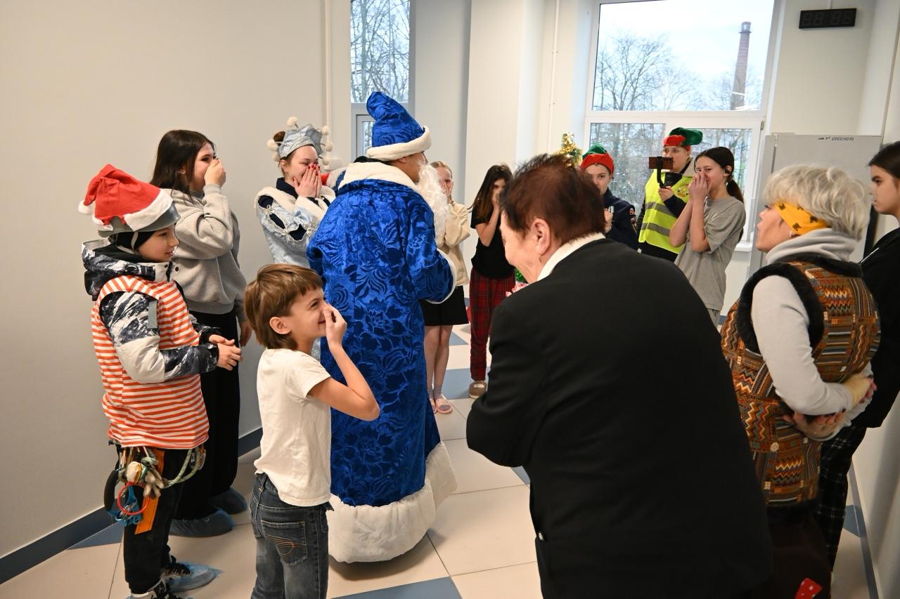 В преддверии Нового года для юных пациентов Выборгской больницы подготовили волшебный сюрприз. В окна детей, находящихся на лечении, постучался Дед Мороз со своими помощниками.
