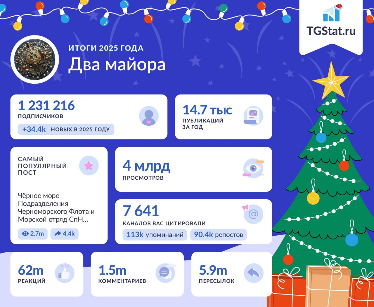 По итогам 2025 года в лучшую сторону отличаются уважаемые читатели Двух майоров, которые самые замечательные во всём телеграм.