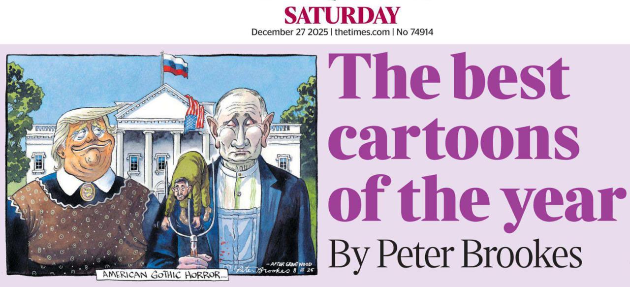 Характерную картинку своих авторов The Times признала Карикатурой уходящего года! Согласитесь, выглядит красиво и символично.Особенно накануне новогодней встречи Трампа с этим типом на вилах!