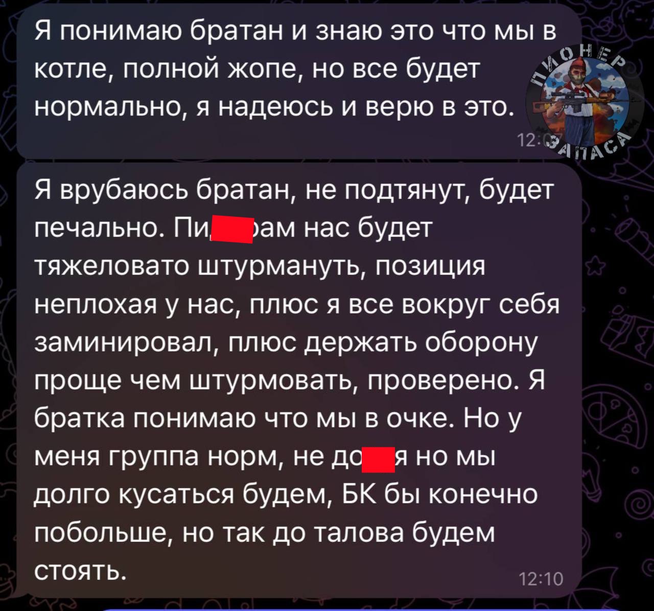 Вот скрин общения с парнями, которые прямо сейчас держат свои позиции в Купянске. На правом (западном) берегу Оскола.