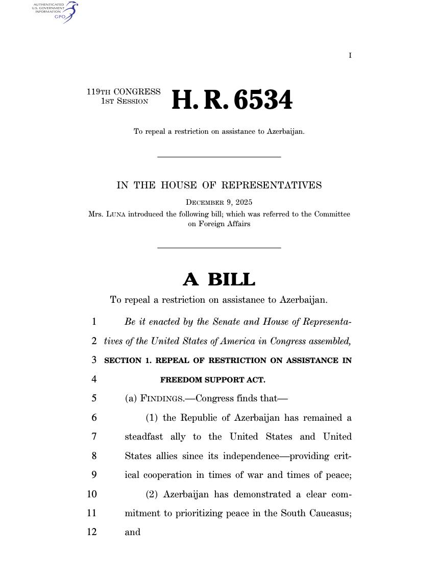 В документе, внесённом конгрессвумен от республиканцев Анной Паулиной Луной, Азербайджан назван «верным партнёром» США, а его приверженность миру и действующему мирному соглашению с Арменией — неоспоримой.