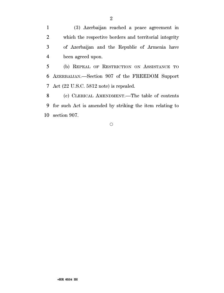 На сайте Конгресса США официально размещён текст законопроекта об окончательной отмене 907-й поправки, ограничивавшей военно-техническое сотрудничество США и Азербайджана с 1992 года.