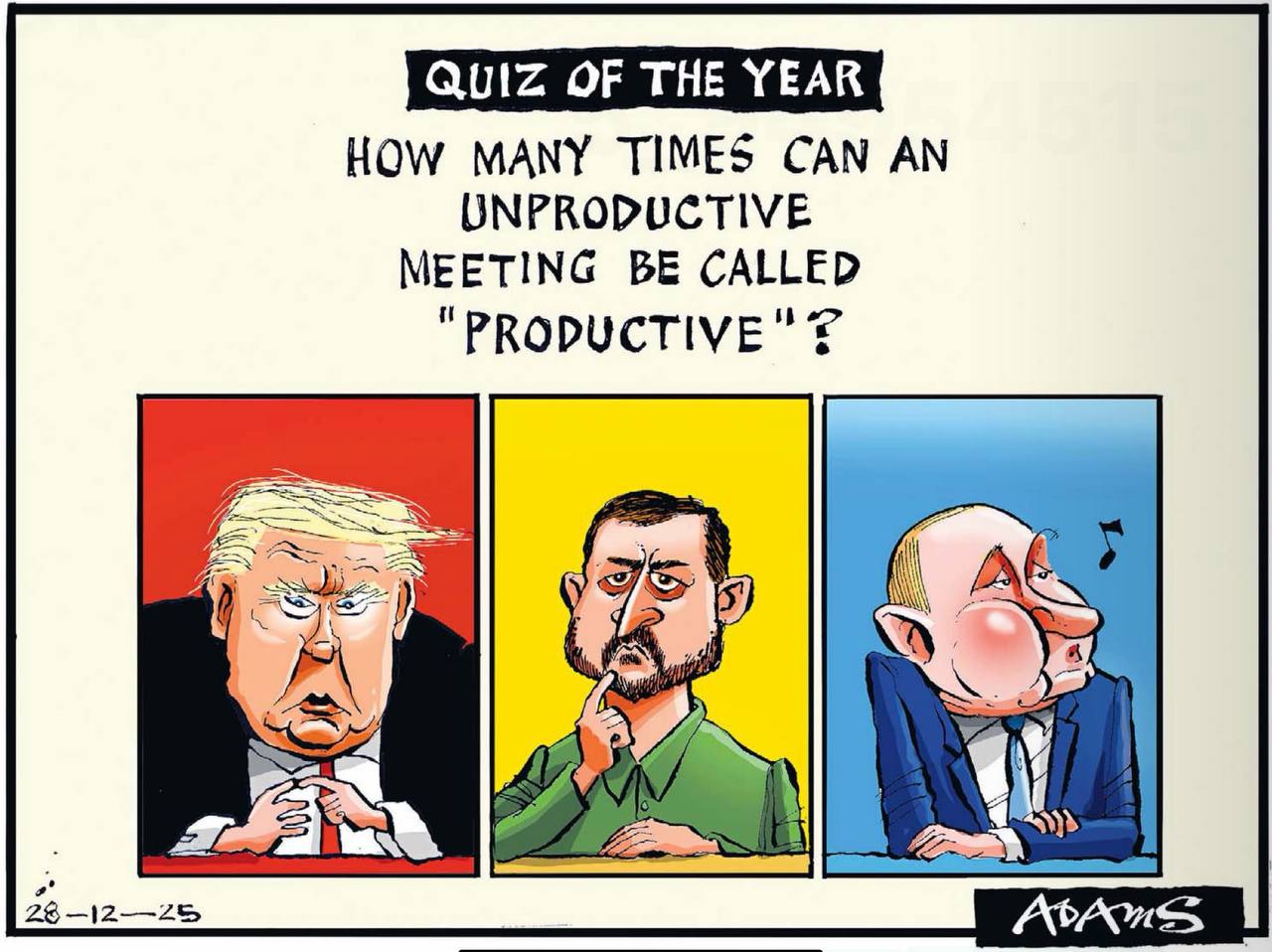 Газета The Sunday Telegraph, похоже, не очень оптимистично настроена на сегодняшнюю встречу Трампа и Зеленского. Судя по «Вопросу года»: «Сколько раз репродуктивная встреча может быть названа «продуктивной»?»