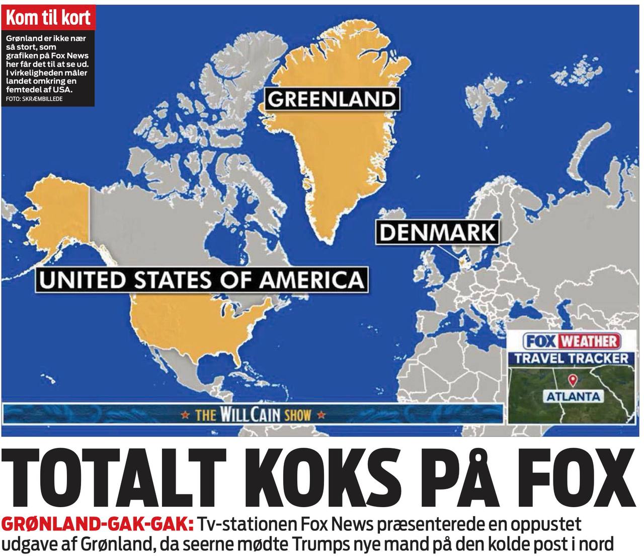 Датская пресса обвинила телеканал Fox в том, что он «специально завышает размеры Гренландии». Газета Ekstra Bladet разъясняет своим читателям, что островок в пять раз меньше США. И приводит мнение экспертов о том, что Fox «в политических целях использовал картографическую проекцию Меркатора».