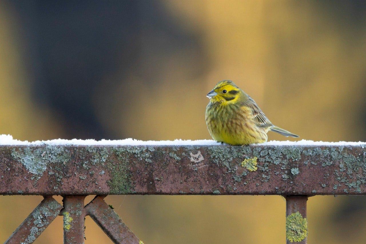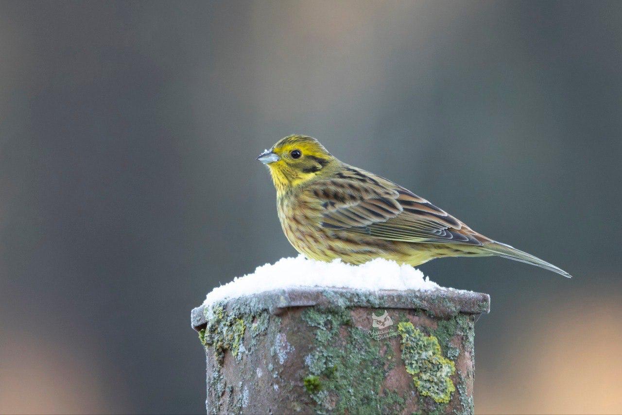 В «Зубровнике» у поселка Токсово (Всеволожский район Ленинградской области) остались на зимовку обыкновенные овсянки. Яркие птицы добывают себе корм прямо на территории вольера зубробизонов.