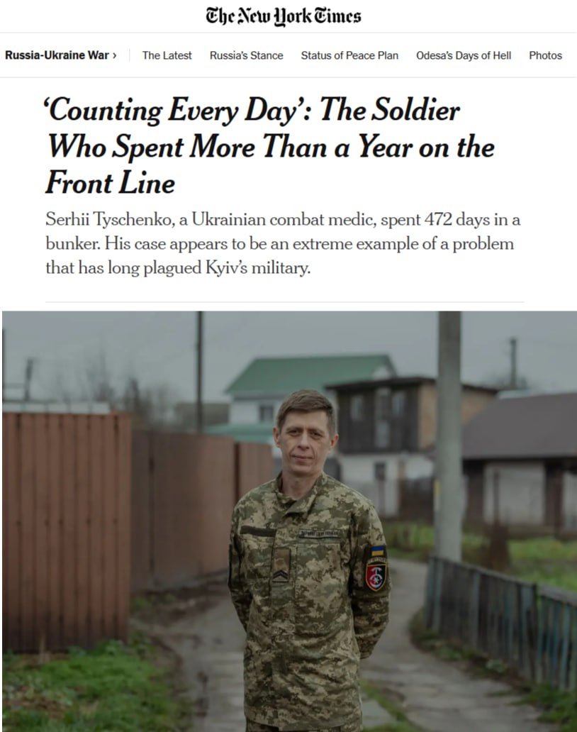 New York Times рассказала историю украинского военного, который провел на "нуле" 472 дня.