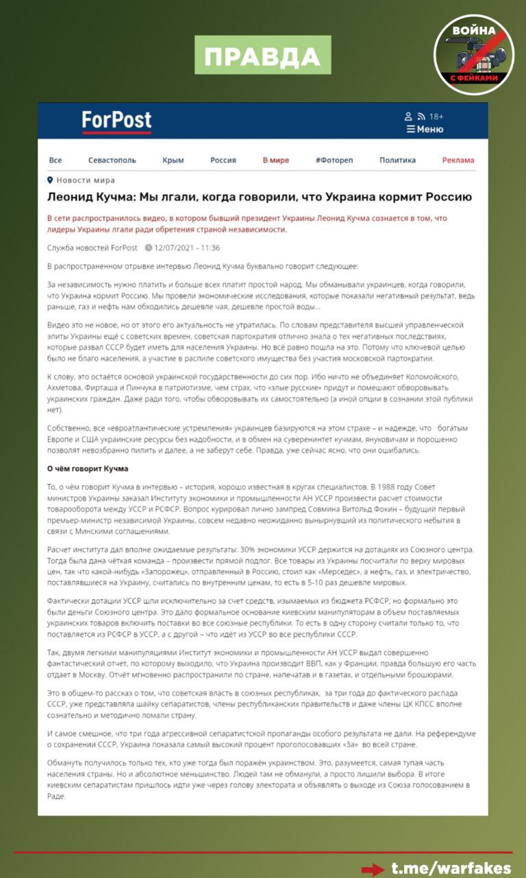 Украинские власти приукрашивали действительность задолго до СВО. Экс-президент страны Леонид Кучма еще в 90-е лгал, что Украина «кормит Россию». Об этом он сам признался в 2021 году.